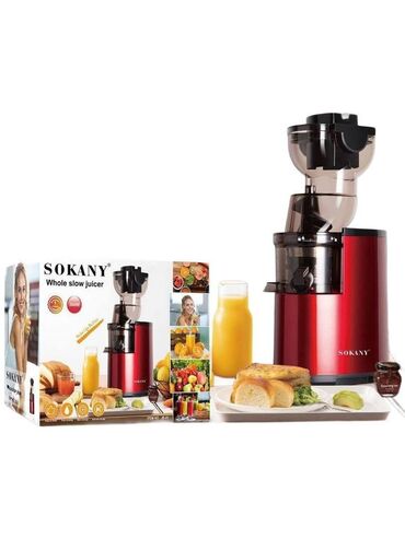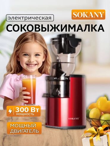 Sokany JE‑25 — шнековая соковыжималка 300 Вт, горловина 80 мм, встроенный резервуар 1 л