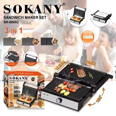 Sokany SK08050 Электрический контактный гриль-тостер с открытым 180-градусным стальным грилем для сэндвичей 2000 Вт с антипригарным покрытием Электрический гриль-тостер