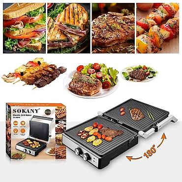Sokany SK08050 Электрический контактный гриль-тостер с открытым 180-градусным стальным грилем для сэндвичей 2000 Вт с антипригарным покрытием Электрический гриль-тостер