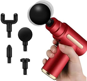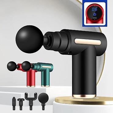 Комплектация: Мышечный массажер, 4 сменных насадки, зарядное устройство, руководство по эксплуатации