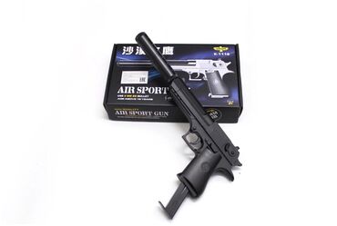Детский пистолет с пульками Desert Eagle детский пневматический с глушителем металлическй K-111S пневматический с глушителем Air sport Gun K-111S