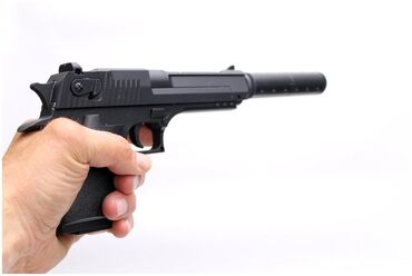 - Размер пистолета: Длинна без глушителя 19см, с глушителем 29,5см, Высота 11,5см.