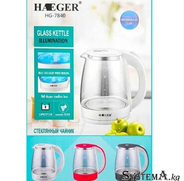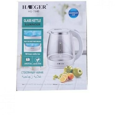 Стеклянный Электрический чайник HAEGER HG-7840 Электрочайник Haeger HG-7840 - это качественный бюджетный электрочайник, отличающийся целым спектром достоинств по сравнению с аналогами. Haeger HG-7840 имеет объем 2 л, такого объема будет достаточно для семейного чаепития, а также для приготовления пищи, большой объем - это экономия, ведь такой чайник приходится реже включать. Колба Haeger выполнена из стекла, а значит он экологичен и абсолютно безопасен для долгого использования, в отличии от чайников с пластиковой колбой, которые имеют значительно более короткий срок службы. Электрочайник Haeger HG-7840 имеет стильный дизайн и станет отличным дополнением интерьера современной кухни. Особенности: Термостойкое стекло. Эксклюзивный дизайн с элегантными вставками из нержавеющей стали. Вращение на 360 градусов. Скрытый нагревательный элемент. Защита от выкипания. Автоматическое отключение и защита от сухого кипения. Емкость 2 л. Мощность 2000 Вт. LED подсветка. Характеристики: Тип: Электрический чайник Производитель: Haeger Страна производитель: Китай Индикатор уровня воды: Да Материал корпуса: Стекло|Пластик Объем: 2.0 л Потребляемая мощность: 2000.0 Вт Тип нагревательного элемента: Скрытый нагревательный элемент Функция автоотключения: Да Комплектация: Электрический чайник Упаковка Знакомясь с образцами продукции, представленными на сайте, необходимо принимать во внимание некоторые моменты, связанные с точностью передачи цвета и внешнего вида продукции. Производитель оставляет за собой право в одностороннем порядке без уведомления потребителя вносить изменения в цветовую отделку изделия и цвет самого изделия, модель изделия.