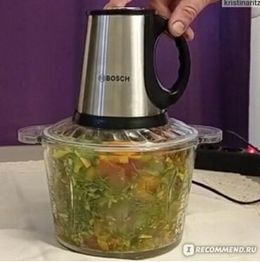 Мощность измельчителя составляет 650 Вт, бак выполнен из стекла, его объем составляет 2 литра. Машина может измельчать как овощи, так и мясо.