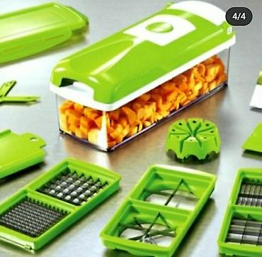 Для того, чтобы нарезать овощи, фрукты, мясо, сыр и другие продукты, достаточно потратить несколько секунд. Кстати, независимо от того сырые они или варенные. Нужно выбрать способ нарезания (кубиками, ломтиками, четвертинками, клиньями), поставить соответствующую насадку-нож, положить на него желаемый продукт и закрыть крышку, которая протолкнет его через лезвия ножа.