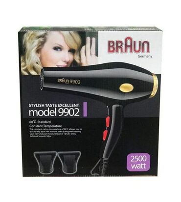 фен braun br-9902 с выполнен по высокой технологий. Долговечный. Он оснащен новейшими технологиями: сетчатый фильтр, мощный электрический двигатель, термостат, который защищает фен от перегревания. Данный фен имеет безупречный дизайн, легкий и компактный. Легкость фена одна из важных характеристик для длительной работы. Подойдёт как для парикмахеров так и для домашнего пользования.