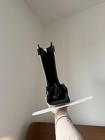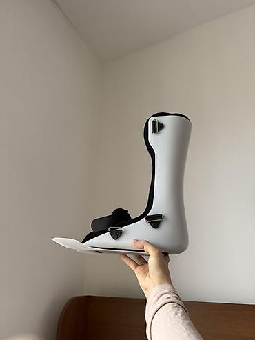 - Конструкция: жесткий пластиковый каркас с удлиненной платформой под стопу и подъёмом до верхней трети голени. Внутри мягкая съемная подкладка из ткани.