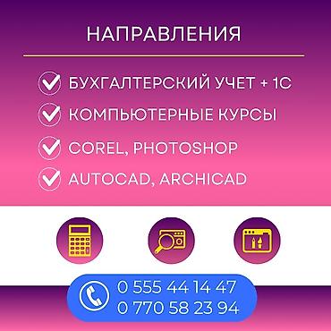 Курс бухучета, включает в себя налогообложение, мсфо, фин. Учет, 1с (версия 7. 7 и 8. 3). Оплата – 7000 сом в группе или 12000 сом индивидуально. Курс длится : 1 месяц – основы и 2 недели обучение...