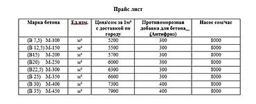 Бетон с доставкой по городу. Ассортимент марок и цены за 1 м³ согласно прайс‑листу: