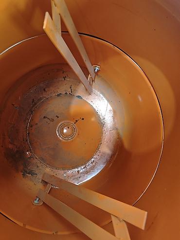 - Металлический барабан с внутренними лопастями для эффективного перемешивания раствора и смесей.