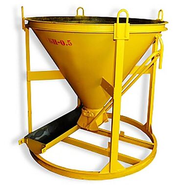 Бадья для бетона БН 0,5 м3 с лотком используется для кратковременного хранения и транспортировки бетонной смеси, других строительных растворов к месту непосредственного использования.