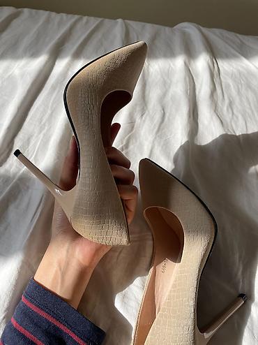 В наличии очень шикарные туфли лодочки от премиального испанского бренда Uterque в красивом бежевом цвете с ремешками на щиколотке. Очень классно будут смотреться с нарядами в любой сезон Каблук...