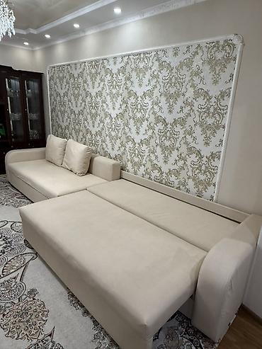 Самовывос!! Бежевый раскладной диван с подушками - Тип: прямой диван-кровать - Механизм: раскладывается в полноценное спальное место (на фото показаны этапы трансформации) - Комплектация: 3 больши...