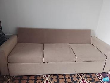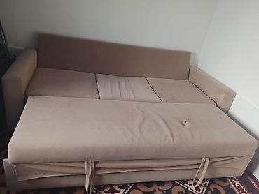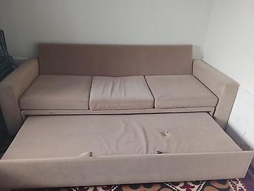 В г.Кант продаётся раскладной диван-кровать б/у, ткань потёрлась, имеются 3 дырочки. - Тип: прямой диван с мягкими подлокотниками - Механизм: раскладывается в полноценное спальное место (книжка/кл...
