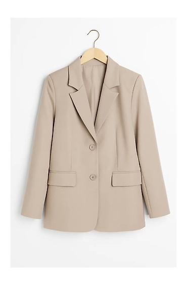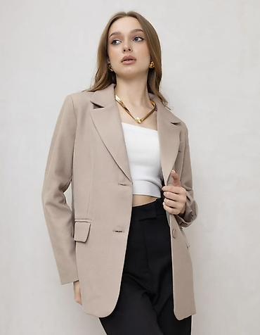 Бежевый женский пиджак - Классический крой с прямой линией плеч и