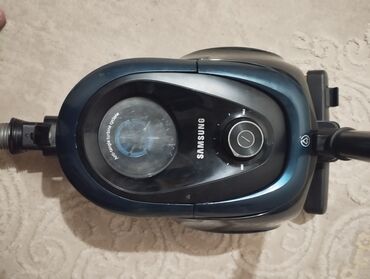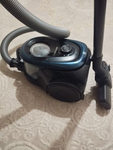 Пылесос Samsung безмешковый (Cyclone Force/Turbine). Компактный корпус с колбой для пыли и циклонным фильтром — не требует мешков, контейнер легко снимается и моется.