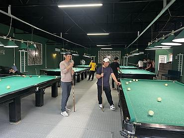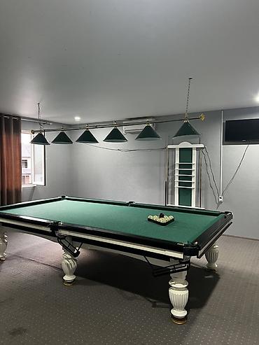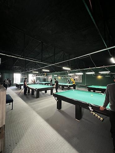 - Равномерное верхнее освещение над каждым столом, удобные кии и держатели, мел.