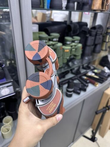 Бинокль камуфляжной расцветки с оранжевыми, серыми и темно-синими