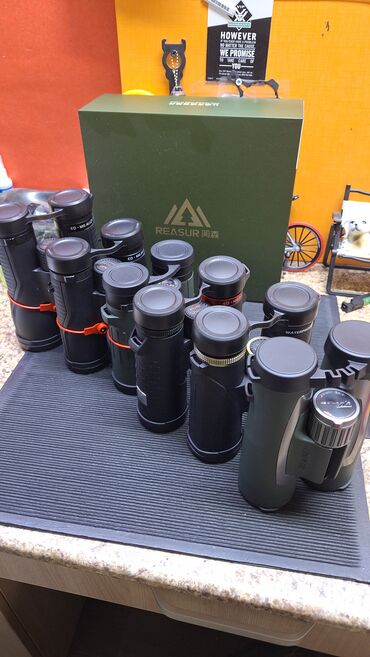 Комплектация на фото: бинокли различных модификаций REASUR, фирменная коробка, штатные крышки на оптику.