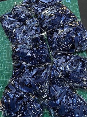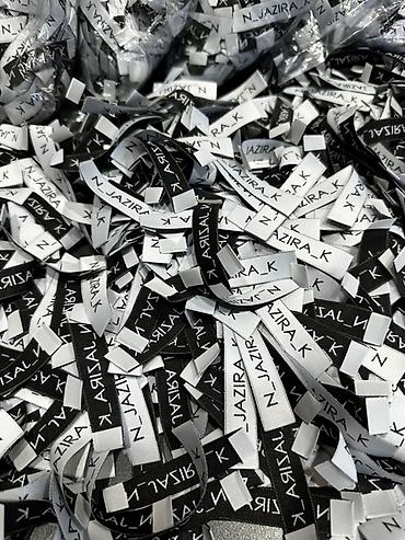 - На фото примеры: бирки с брендовым названием, размерными обозначениями и декоративными подворотами.