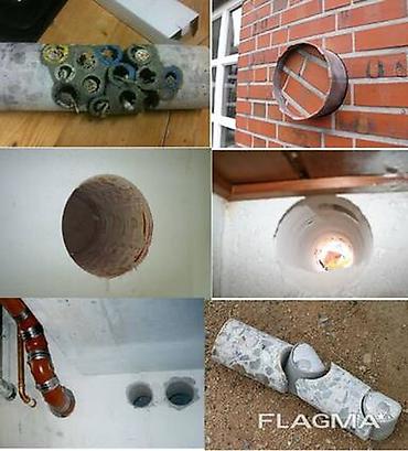 - Сверление отверстий коронками диаметром от малых до крупных под вентиляцию, кондиционеры, котлы, дымоходы, водопровод, канализацию, электрику.