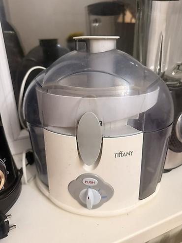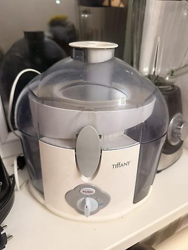 Дополнительно на фото: соковыжималка Tiffany (центробежного типа) с прозрачным резервуаром и механическим переключателем PUSH/скорости. Цена 600 сом.