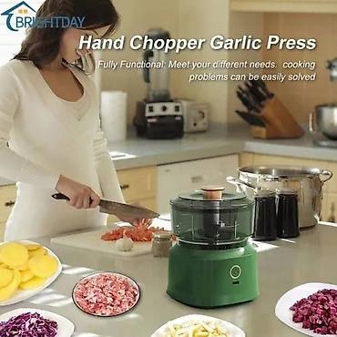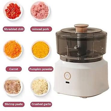 Эта электрическая чеснокодавилка-мясорубка позволяет быстро измельчать чеснок, перец, лук и другие приправы. Он идеально подходит для небольших задач по приготовлению пищи. 2. Удобная емкость: Беспроводная электрическая мясорубка емкостью около 350 мл может легко удовлетворить ежедневные потребности домашнего хозяйства в приготовлении пищи.При чистке мини-измельчителя не забудьте сначала снять лезвия, чтобы избежать травм рук. 3. Долговечность и высокая эффективность: Мини-миксер для чеснока оснащен лезвиями из нержавеющей стали, которые не только долговечны, но и высокоэффективны при нарезке. 4. Безопасные и пригодные для употребления в пищу материалы: Машина для приготовления детского питания изготовлена из высококачественного пищевого материала ABS, что гарантирует безопасное хранение продуктов в процессе измельчения. 5. Простота в использовании и чистке: Просто поместите продукты или ингредиенты в портативный кухонный электрический комбайн, накройте