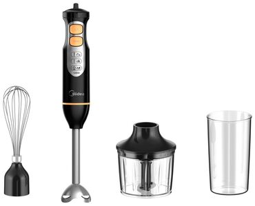 Блендер от Midea цвет товара: черный максимальная мощность: 1200 Вт материал кувшина: пластик материал корпуса: пластик материал погружной части: металл количество скоростей: 2 управление: механич...