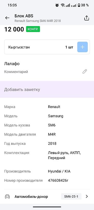 - Renault Samsung SM6, двигатель M4R, год 2018