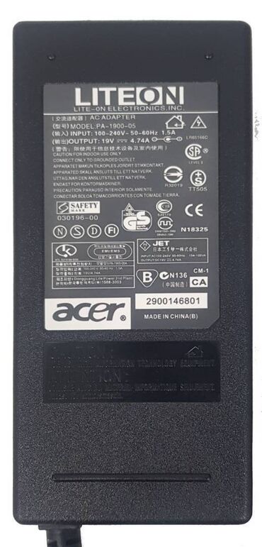 AcerBenQHPБлок питания #3 (адаптер питания, зарядник, зарядное) для ноутбуков Acer Aspire One, E5/ES, TravelMate, Iconia Tab и других. Напряжение: 19V. Ток: 4,74А.