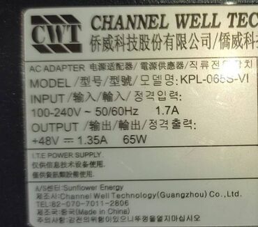 Блок питания для POE коммутатора, сетевых устройств CWT KPL-065S-VI 48V 1.35A, 65W, разъем 5.5mm*2,5mm