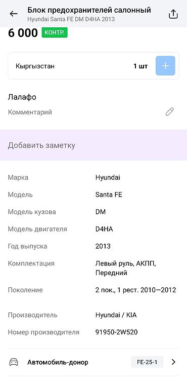 - Применяемость: Hyundai Santa Fe DM, двигатель D4HA, 2013 г., левый руль, АКПП, передний привод (соответствие по номеру детали обязательно)