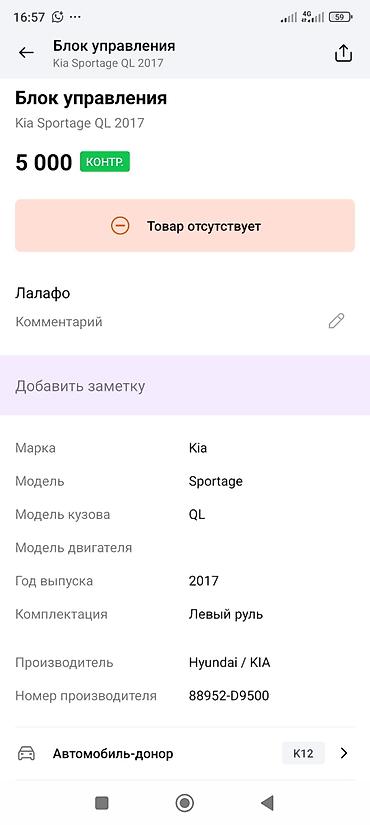 - Совместимость: платформа Hyundai/KIA с соответствующим номером детали — сверяйте по VIN и коду 88952-D9500