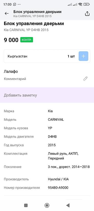 Проверьте соответствие номера 95480-A9000 и маркировок вашему VIN/ЭБУ перед установкой.