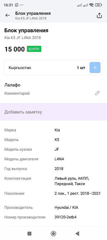 - Применимость: Kia K5 (кузов JF), 2‑е поколение, рестайлинг 2018–2021