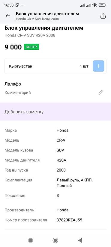 - Совместимость: Honda CR‑V III (2007–2011) с мотором R20A; перед покупкой сверяйте номер блока и конфигурацию автомобиля