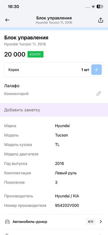 - Применимость: Hyundai Tucson TL, 3‑е поколение, 2016 г., левый руль