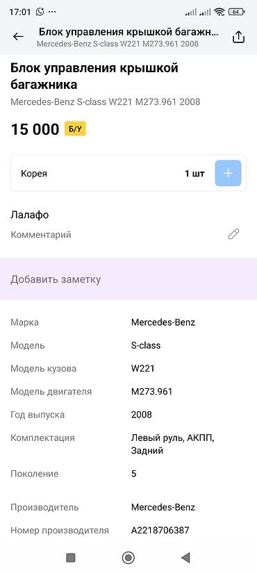- Применяемость: Mercedes-Benz S-class W221, поколение 5