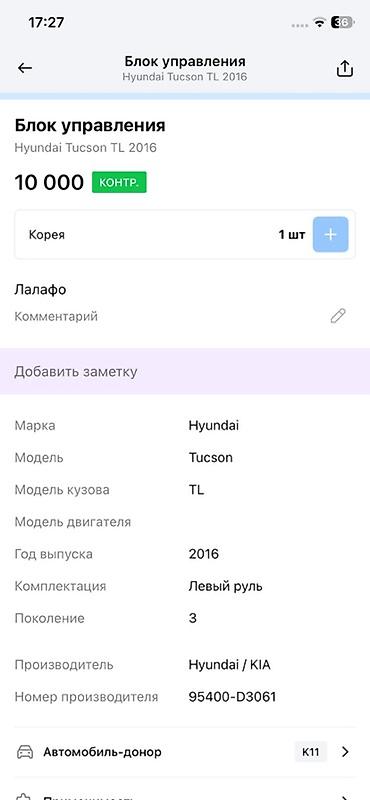 - Применяемость: Hyundai Tucson TL, 3‑е поколение, 2016 г.в. (Hyundai/KIA).