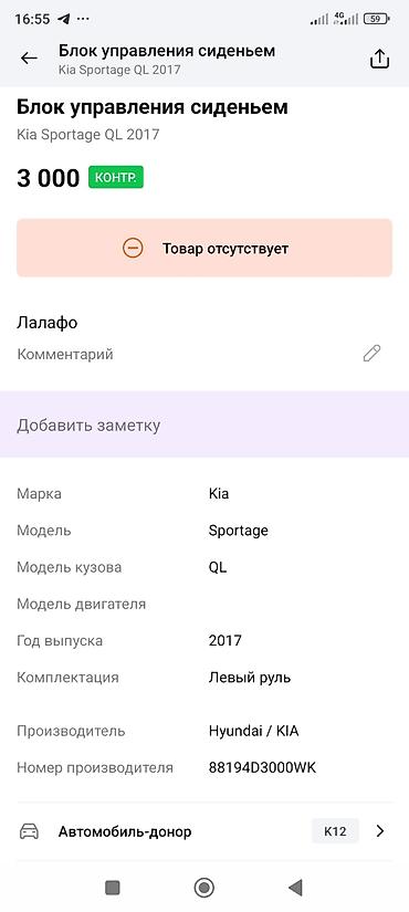 Подходит для: Kia Sportage поколения QL (ориентир — модельный год 2017, левый руль). Совместимость по VIN и номеру детали.