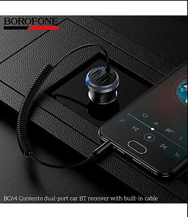 - Автомобильный BT‑ресивер BOROFONE BC64 с встроенным AUX‑кабелем.