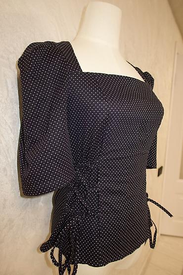 Блузка в горох с корсетной шнуровкой по бокам