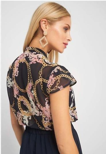 Шифоновая прозрачная блуза-рубашка с чёрным рисунком. Состояние новое,не подошёл размер