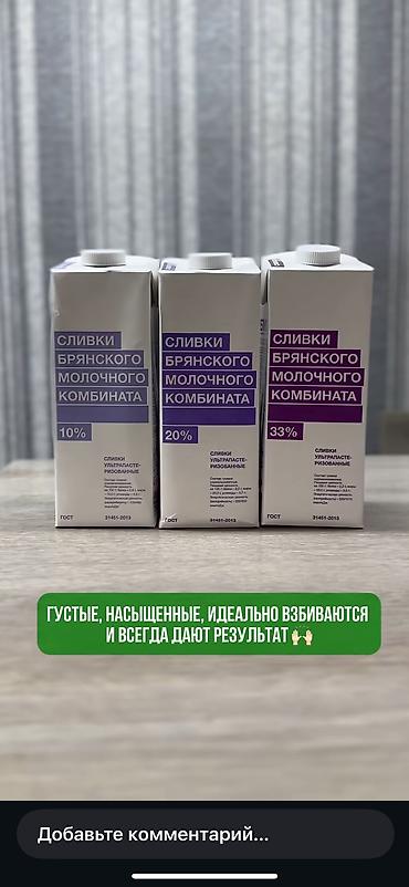 Сливки и молочная продукция для кулинарии и кондитерки.