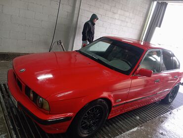 BMW 5 Series (E34), седан, ярко‑красный цвет.