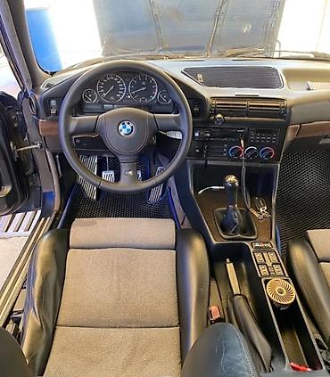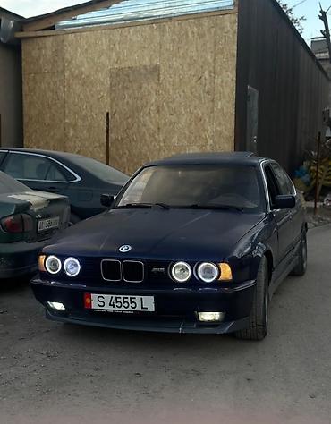 BMW 5 серии (E34) седан, тёмно‑синий цвет. Основные особенности: - Кузов E34 с фирменной «четырёхглазой» оптикой - Задний привод - Механическая коробка передач - Бензиновый двигатель (рядный), кла...