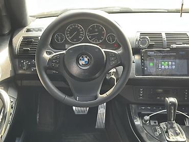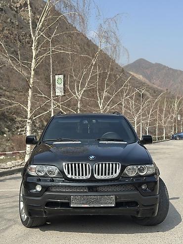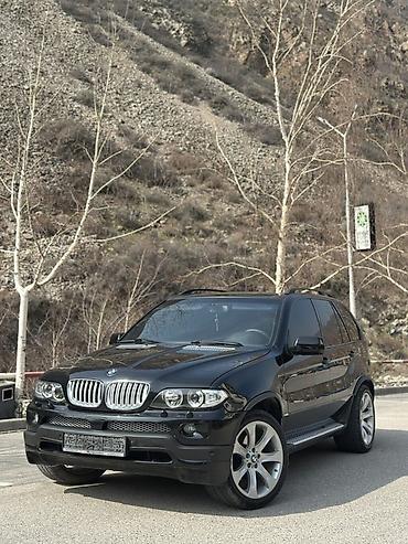 BMW X5 (E53), черный внедорожник. Кузов и внешний вид: - Черный цвет, фирменная решетка радиатора BMW - Классические округлые “ангельские глазки” (двойные линзованные фары) - Противотуманные фары ...
