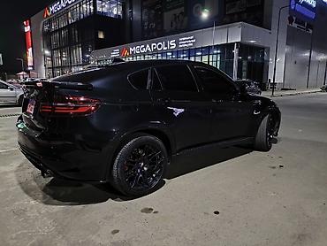 BMW X6 (E71) в стильном чёрном цвете с агрессивным аэродинамическим обвесом и затемнённой оптикой.