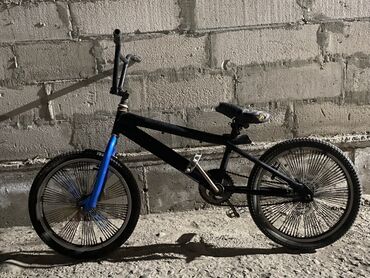 BMX-велосипед для трюков и катания по городу. Особенности: - Стальная рама BMX с усиленной верхней трубой. - Колеса примерно 20" с широкими покрышками полуслик/грунт и частыми спицами. - Односкоро...