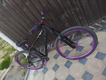 Отлично подходит для памп-трека, дёрт-джампа, стрита и катания по городу: простая и надёжная компоновка, малый вес, жёсткая вилка для точности приземлений, синглспид — минимум обслуживания. Яркие фиолетовые акценты на ободах и комплектующих.